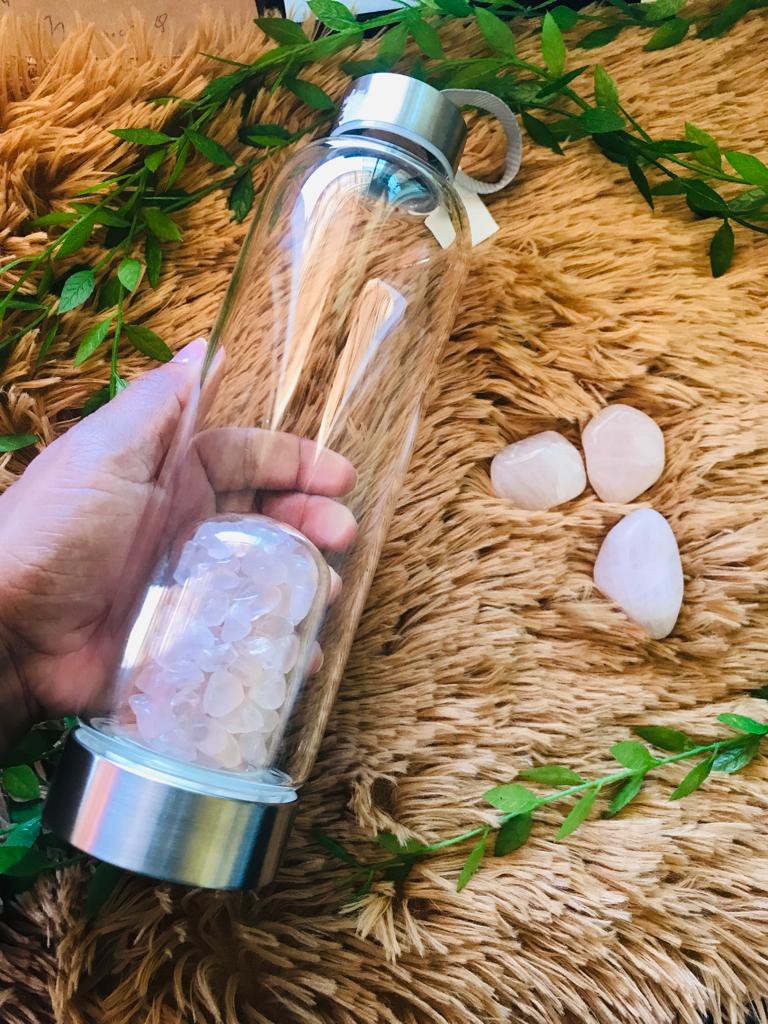 Garrafa de Agua com Cristal + Capa - (Quartzo Rosa - Roladas)